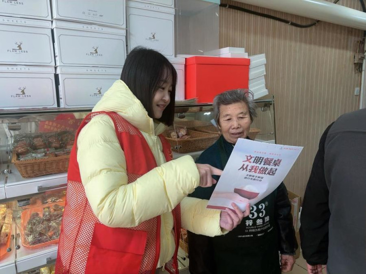 在街道食堂、辖区餐饮店、酒店,“厉行节约反对浪费”“文明就餐适当点餐”等宣传标语随处可见,为到店就餐的顾客营造了浓厚的“文明餐桌”氛围。社区网格员与志愿者走进辖区餐馆,向商户和顾客发放文明餐桌倡议书,鼓励餐饮单位提供“小份菜”“半份菜”等灵活选择,引导消费者合理点餐、减少浪费。